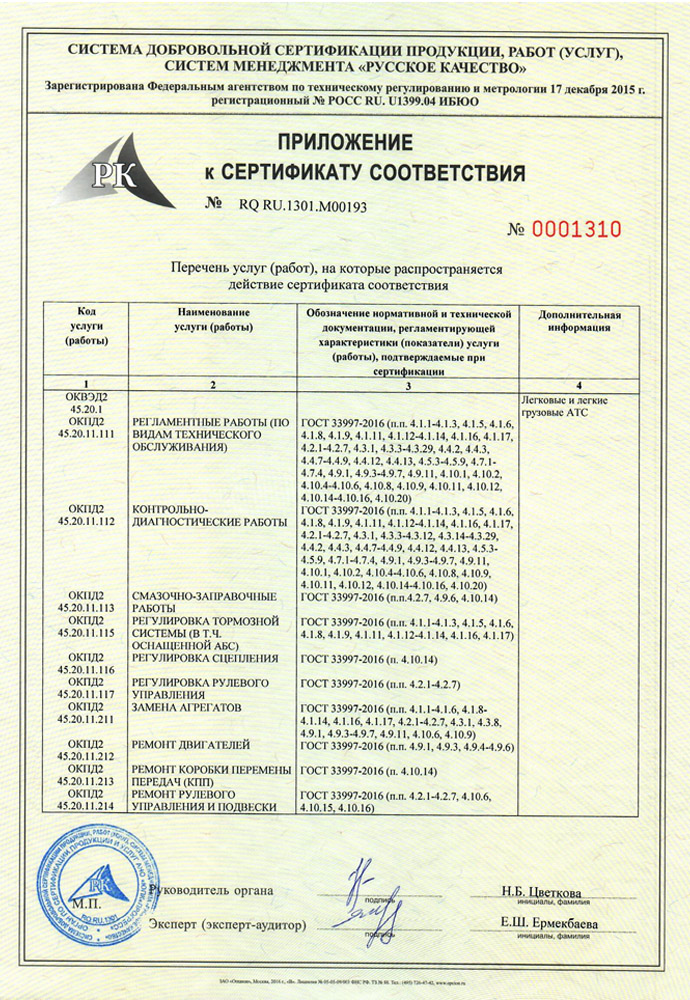 По окончанию работ автомобиль передается клиенту с полным комплектом документов и дополнительными рекомендациями по обслуживанию автомобиля.