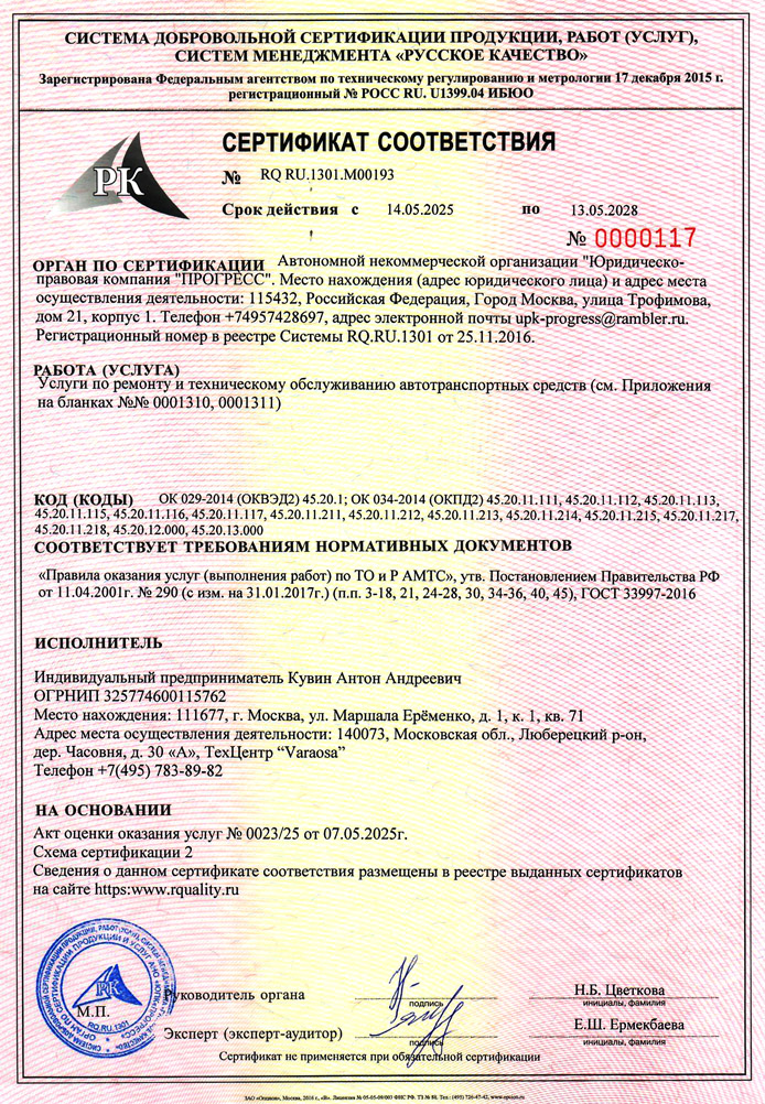 Перечень работ определяется с мастером консультантом после проведения комплексной диагностики.
