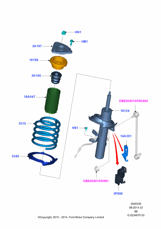 Амортизатор передний, RH (cо спортивной подвеской). Номер детали на фото: 18124