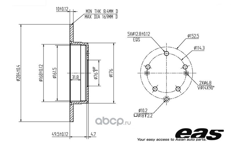 Мы предлагаем купить диск тормозной EBD10044CG EAS, цена дешевле заводской в интернет-магазине Varaosa.ru