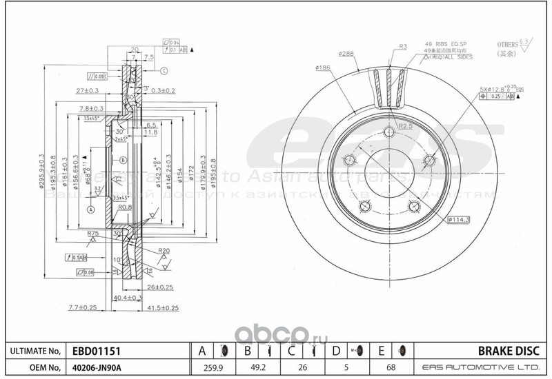 Диск тормозной (EAS) EBD01151CG