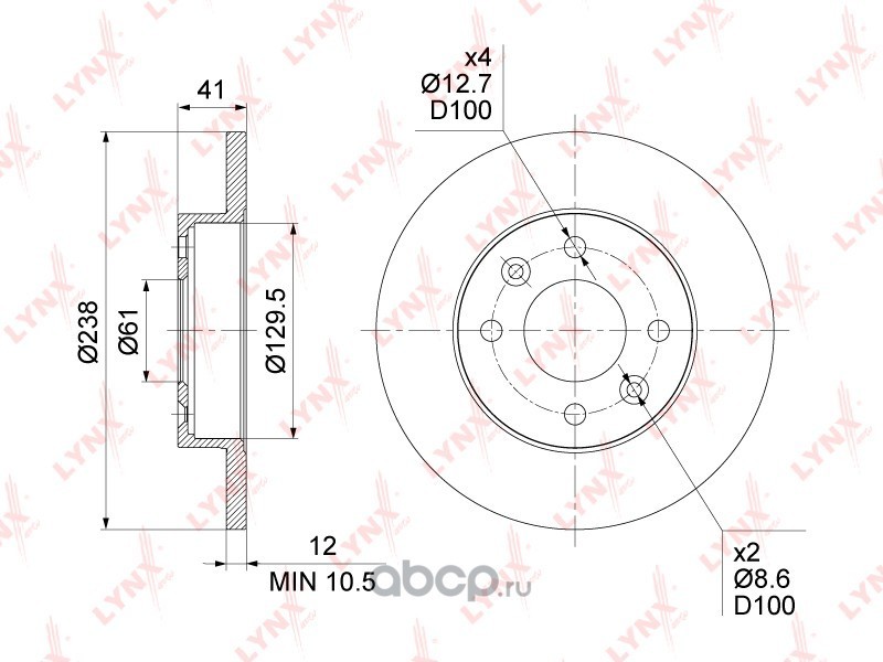 Диск тормозной передний (238x12) (LYNXauto) BN1417, цена ниже розничной