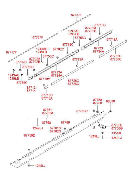 Мы предлагаем купить клипсу накладки порога 8775535000 Hyundai-KIA, цена дешевле заводской в интернет-магазине Varaosa.ru