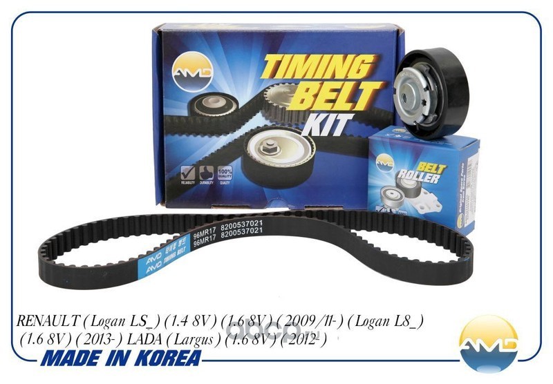 Мы предлагаем Комплект грм (logan 8v 2010-) (ремень грм + ролик) (AMD) AMDKITBR61, купить со склада интернет-магазина Varaosa.ru в Москве.
