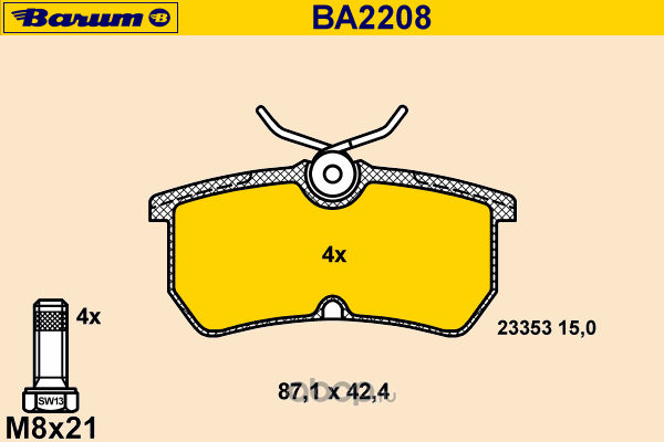 Комплект тормозных колодок, дисковый тормоз (BARUM) BA2208