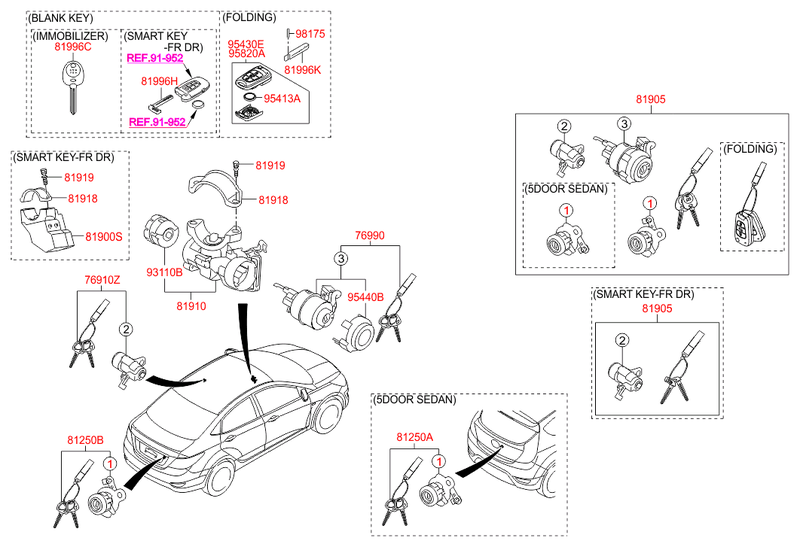 Мы предлагаем купить комплект замков (3шт. с 2 ключами) 819054L000 Hyundai-KIA, цена дешевле заводской в интернет-магазине Varaosa.ru
