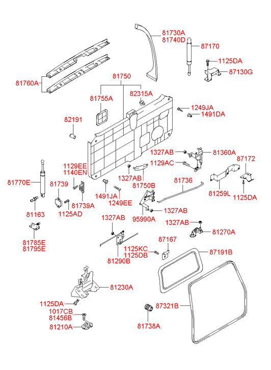 МЕХАНИЗМ ЗАМКА ДВЕРИ. Номер детали на фото: 87130G