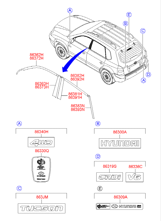 Мы предлагаем купить запчасть: молдинг двери 863632E000 Hyundai-KIA, цена дешевле заводской в интернет-магазине Varaosa.ru