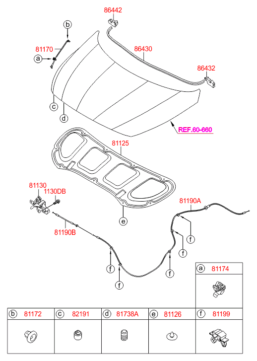 ТРОС ЗАМКА КАПОТА. Номер детали на фото: 81190B
